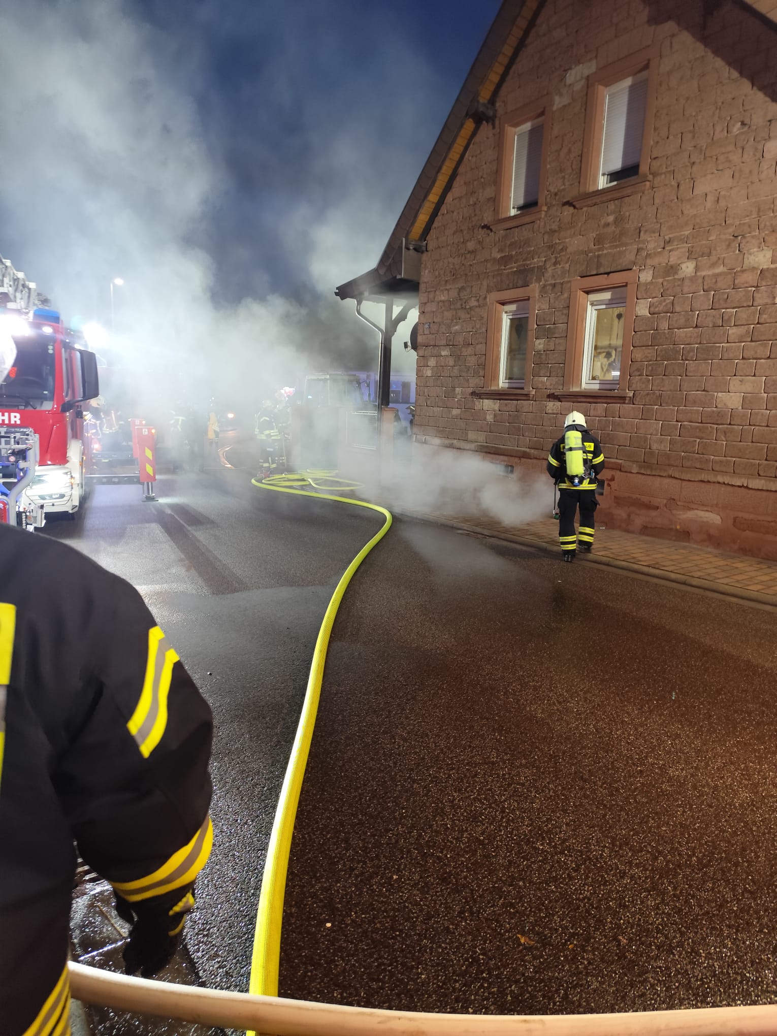 Gemeinsam mit weiteren Feuerwehren der VG Dahner Felsenland wurden wir zu einer Rauchentwicklung aus einem Wohnhaus in Busenberger Hauptstraße alarmiert. Vor Ort konnte das Meldebild schnell bestätigt werden. Ein Trupp unter Atemschutz ging sofort zur Brandbekämpfung in den verrauchten Keller vor. Vermutlich aufgrund eines Defektes an der Heizungsanlage geriet daneben gelagertes Holz und Papier in Brand. Das Feuer konnte zügig bekämpft werden. Durch weitere Trupps unter Atemschutz wurden anschließend Nachlöscharbeiten durchgeführt und das Wohnhaus belüftet. Durch den Brand wurde außerdem ein Wasserrohr im Keller beschädigt. Wir stellten die Hauptleitung ab und pumpten das Heizungs- und Löschwassergemisch mittels Tauchpumpe ab, sodass der Einsatz ca. um 19:30Uhr beendet war.
