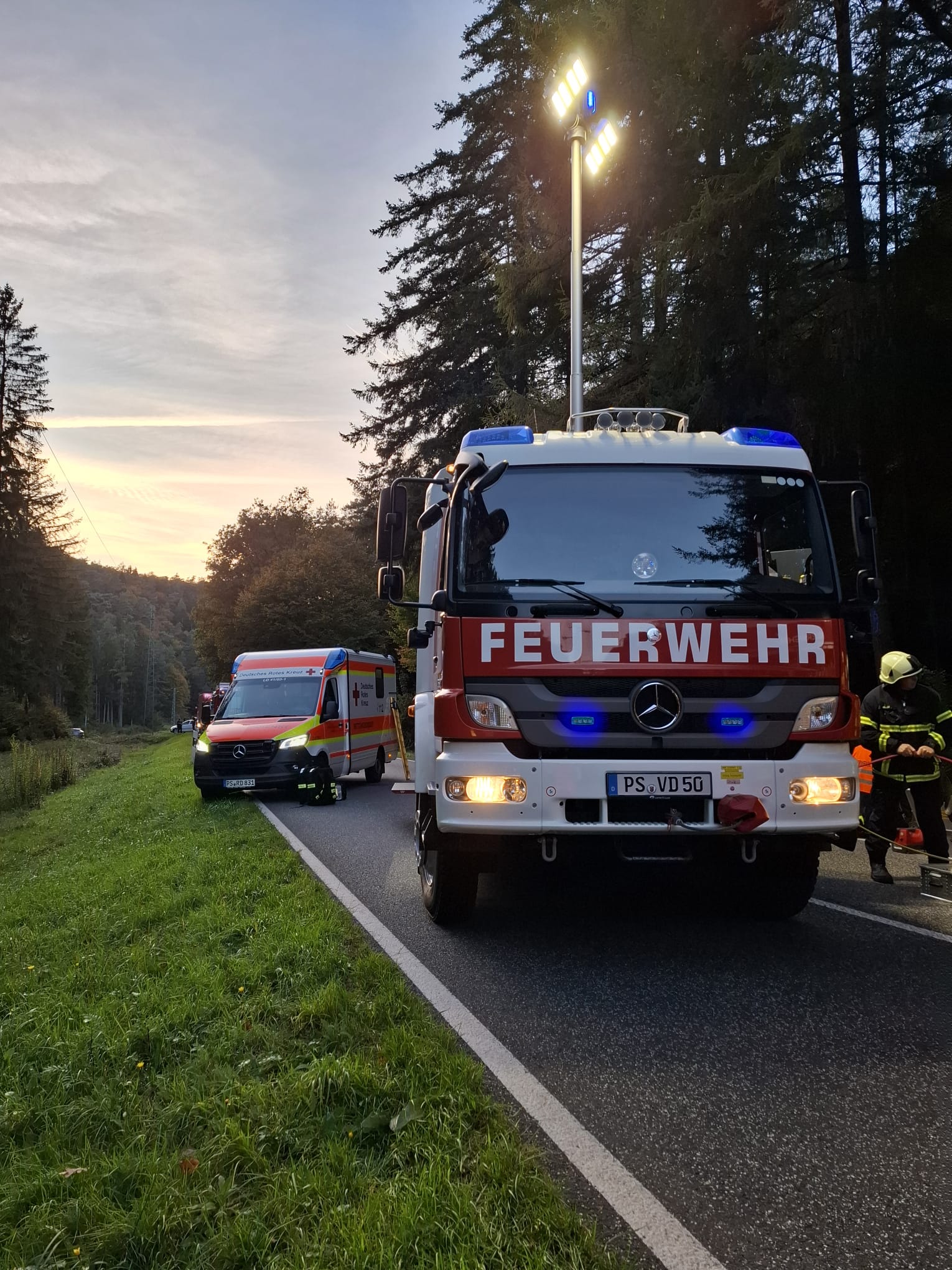 Gegen 17:48Uhr wurden wir gemeinsam mit mehreren Feuerwehren zu einem Verkehrsunfall auf die B427 zwischen der Erlenbacher Kreuzung und Erlenbach-Lauterschwan alarmiert. An der Einsatzstelle wurde ein PKW in Dachlage im Straßengraben vorgefunden. Gemeinsam mit der Feuerwehr Erlenbach und einer Streife der Bundespolizei, die bereits als Ersthelfer vor Ort waren, wurde der Brandschutz sichergestellt und der PKW mit Spanngurten gesichert und leicht angehoben um eine Kommunikation mit dem eingeschlossenen Fahrer zu ermöglichen. Dieser wurde bis zum Eintreffen des Rettungsdienstes betreut. Nach dem Eintreffen der Feuerwehr Dahn wurde das Fahrzeug mit Hebekissen weiter angehoben und der Patient in enger Zusammenarbeit mit dem Rettungsdienst aus dem PKW gerettet. Anschließend wurde das Auto mit Hilfe des Dahner Rüstwagens per Seilwinde aufgerichtet und die Batterie abgeklemmt. Nach rund 2 Stunden war der Einsatz beendet.