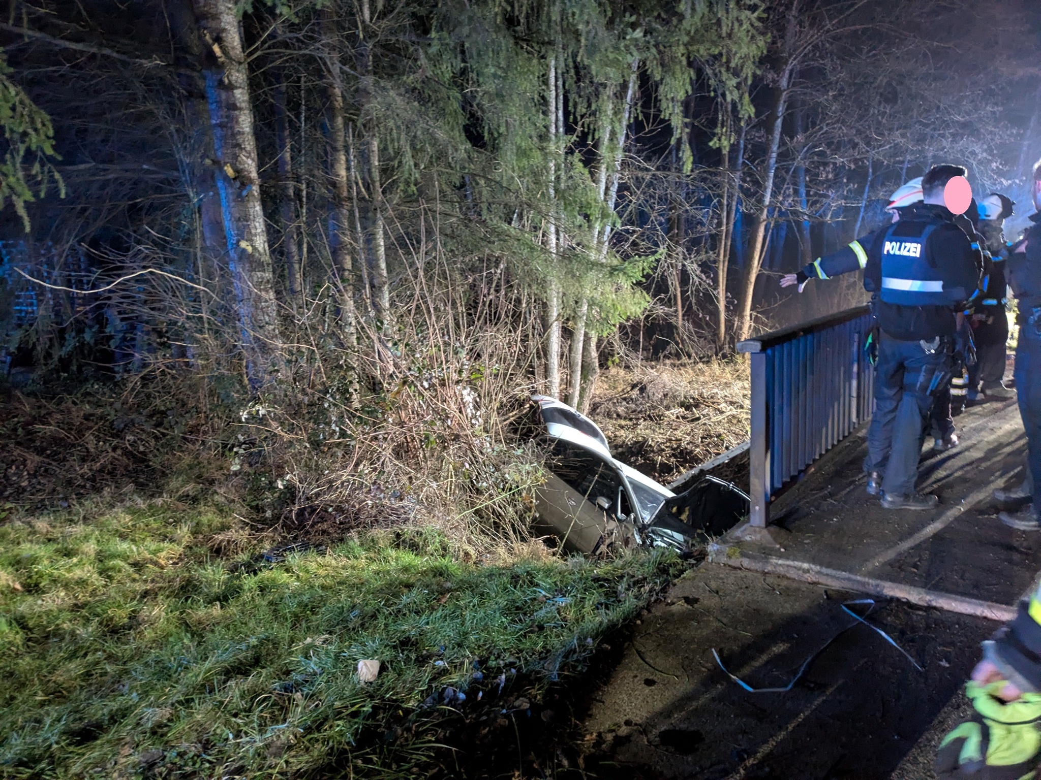 Der PKW musste von einem Abschleppunternehmen wieder aus dem Bauchlauf gehoben werden.
